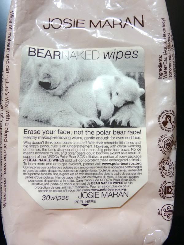 The pale baby pink packet with cute polar bears on it and the JOSIE MARAN brand printed in huge font is appealing. But I do prefer wipes that come in a box instead of packet.